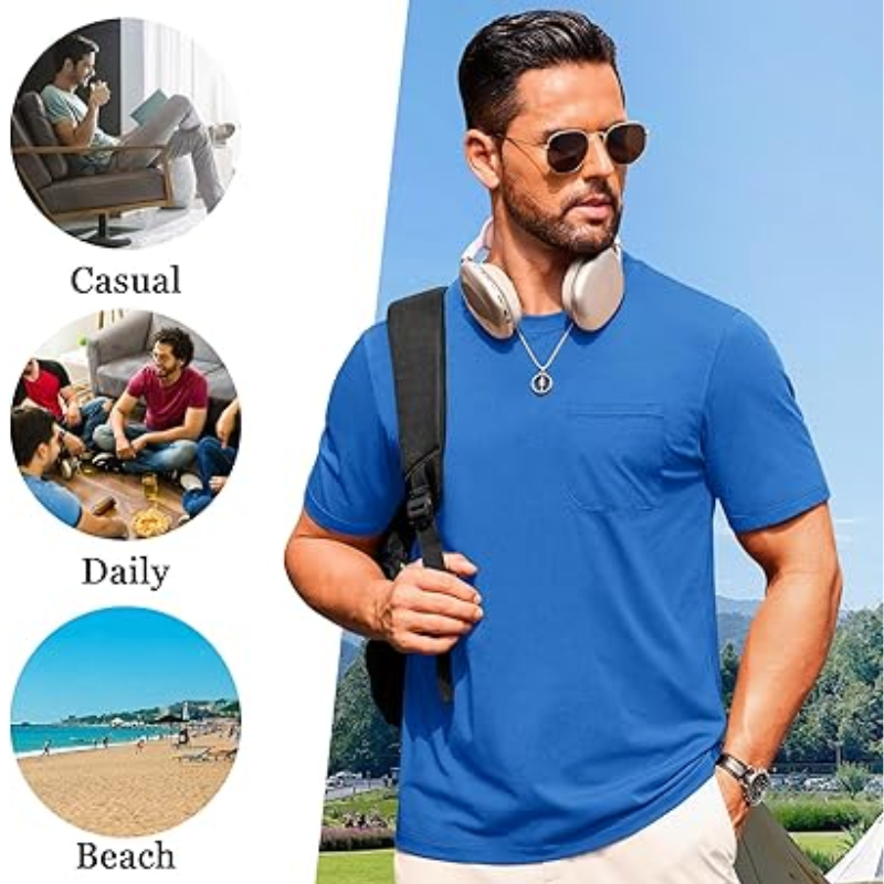 This product is suitable for men who need a functional t shirt with a pocket for regular and casual wear.